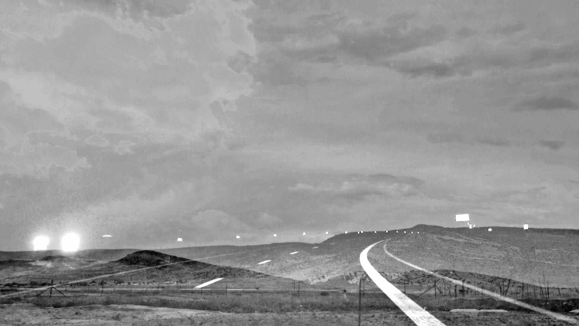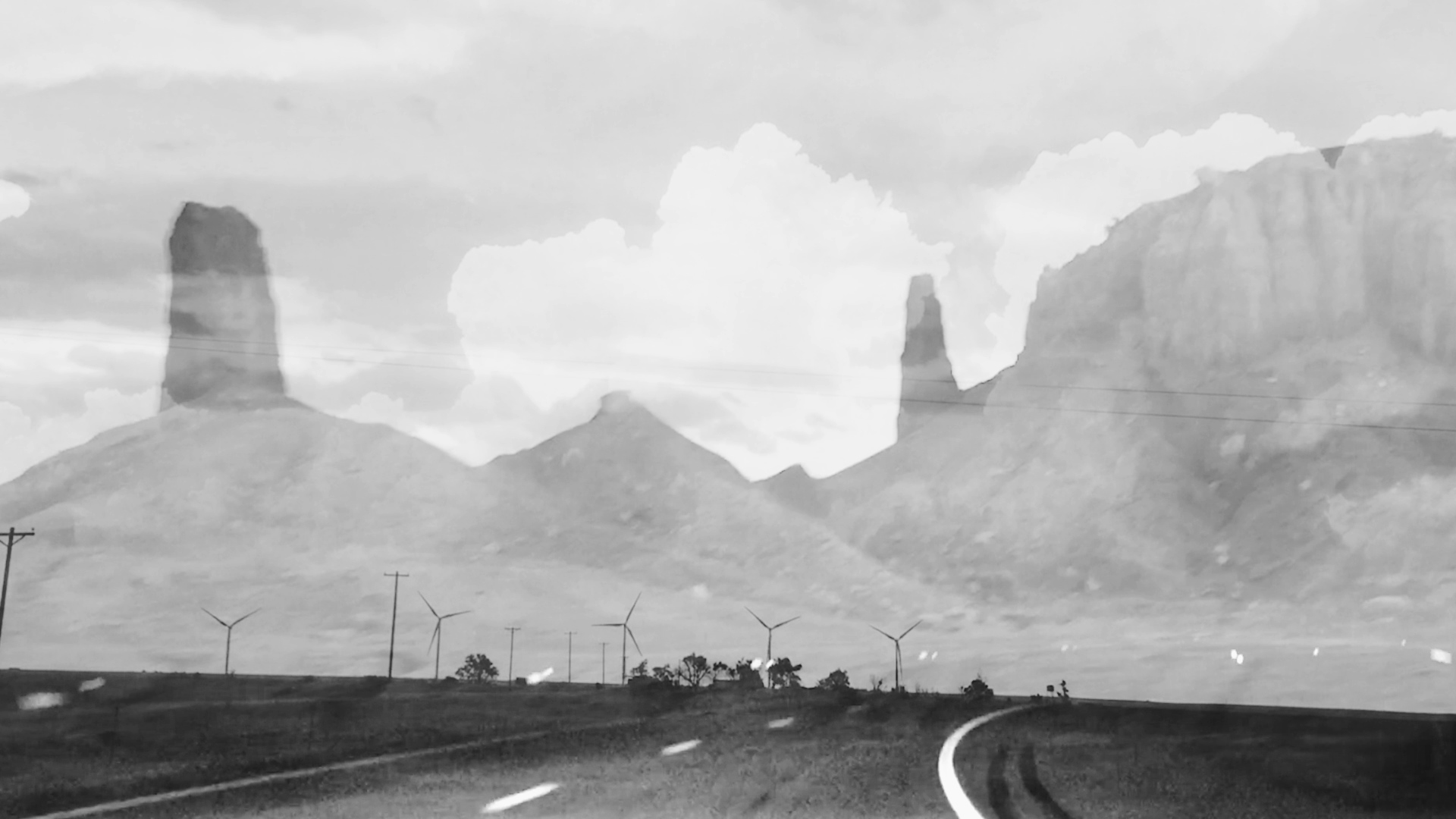 6,414 Miles is a 2-minute looped film of a recent drive across the country to be with a loved one during an impending death. The footage is an amalgamation of six days spent staring mindlessly out of the car window as we raced across the country towards an imminent fate, and back. The foreboding pressure of time was absorbed in aimless thoughts and time zones, while space was defined by the varied topographical landscapes. The linear sequence is a manifestation of recollected memories in multi-planar perspectives from both the driver and passenger seat.